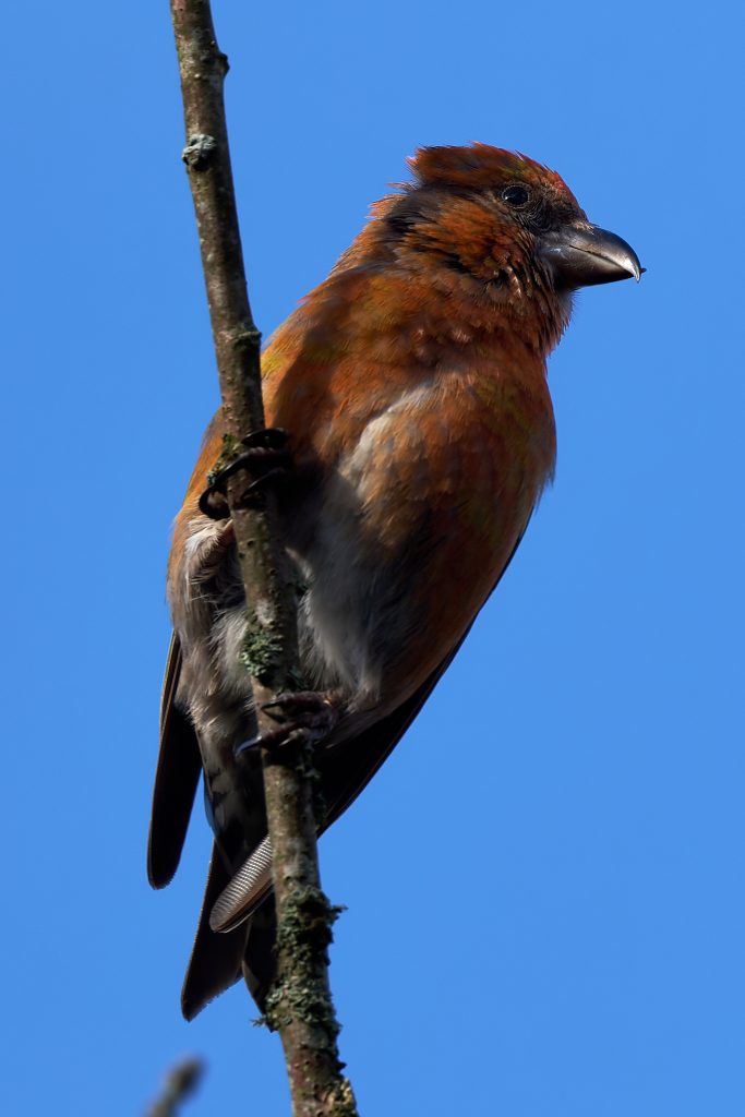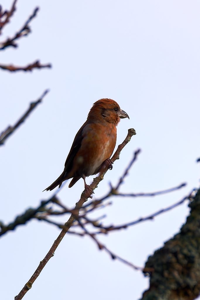 I joined the group for a walk this morning for the first time. It was cloudy and cold and dull lighting for the most part. The highlight was spotting a Crossbill, a first time for me. I was surprised at how close I could get without it taking flight.
