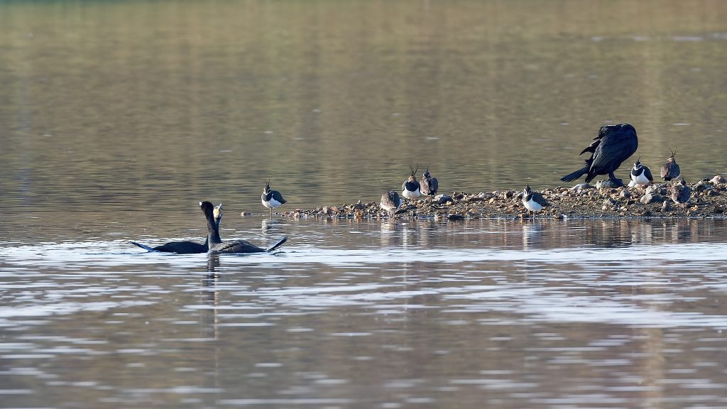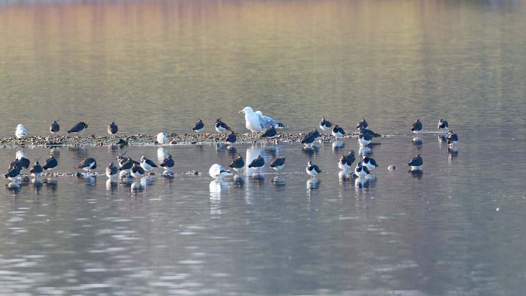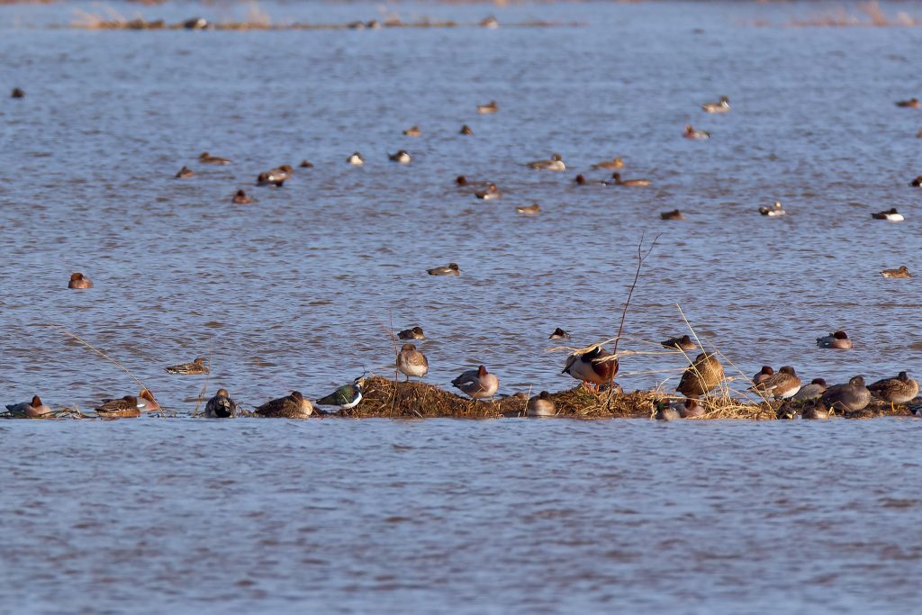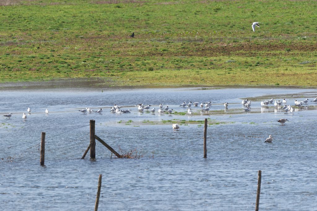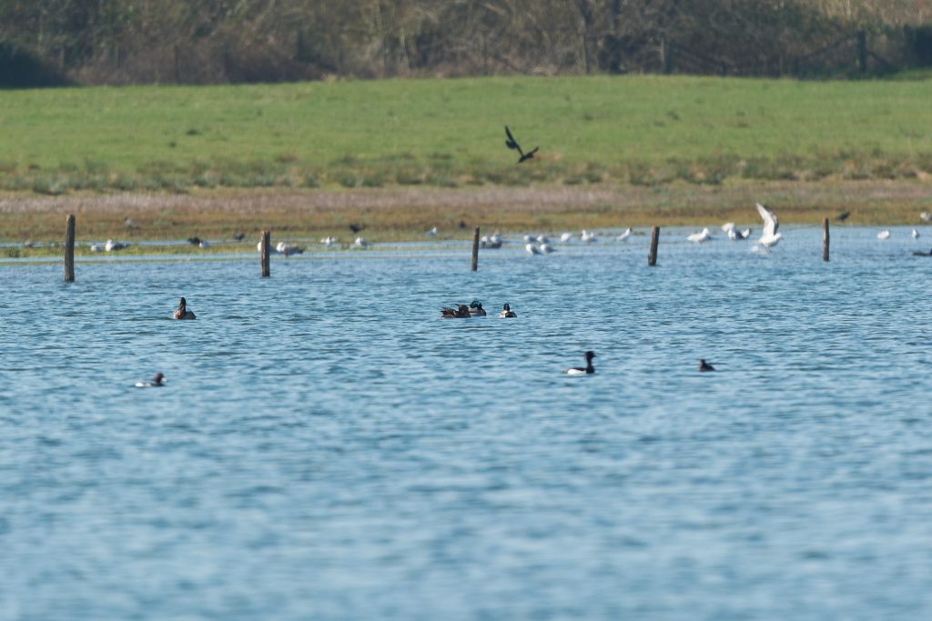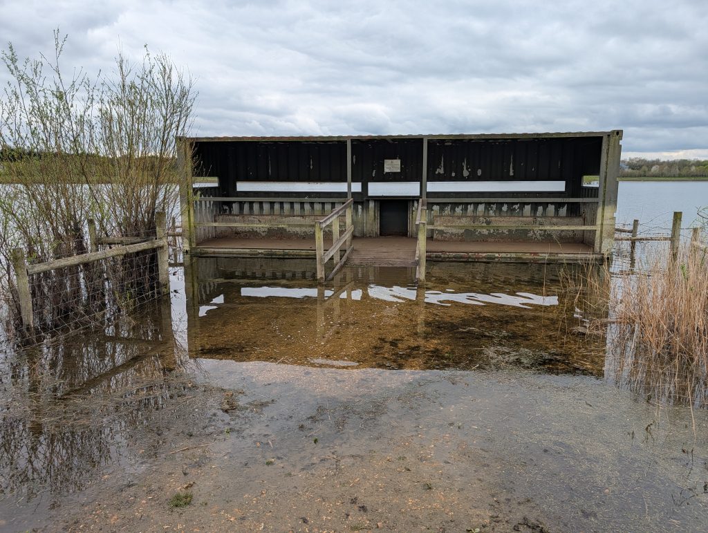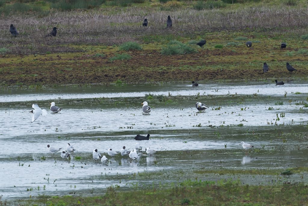 The reserve has 4 hides, 3 of which I found. 1 had no birds in view at all, 1 was closed because of flooding but the remaing hide was very good. The reserve had lots of visitors, I’ve never seen so many people with spotting scopes and binoculars.