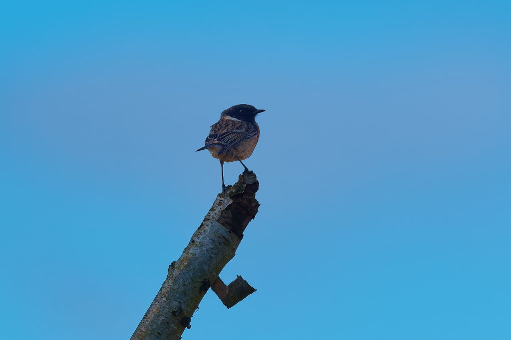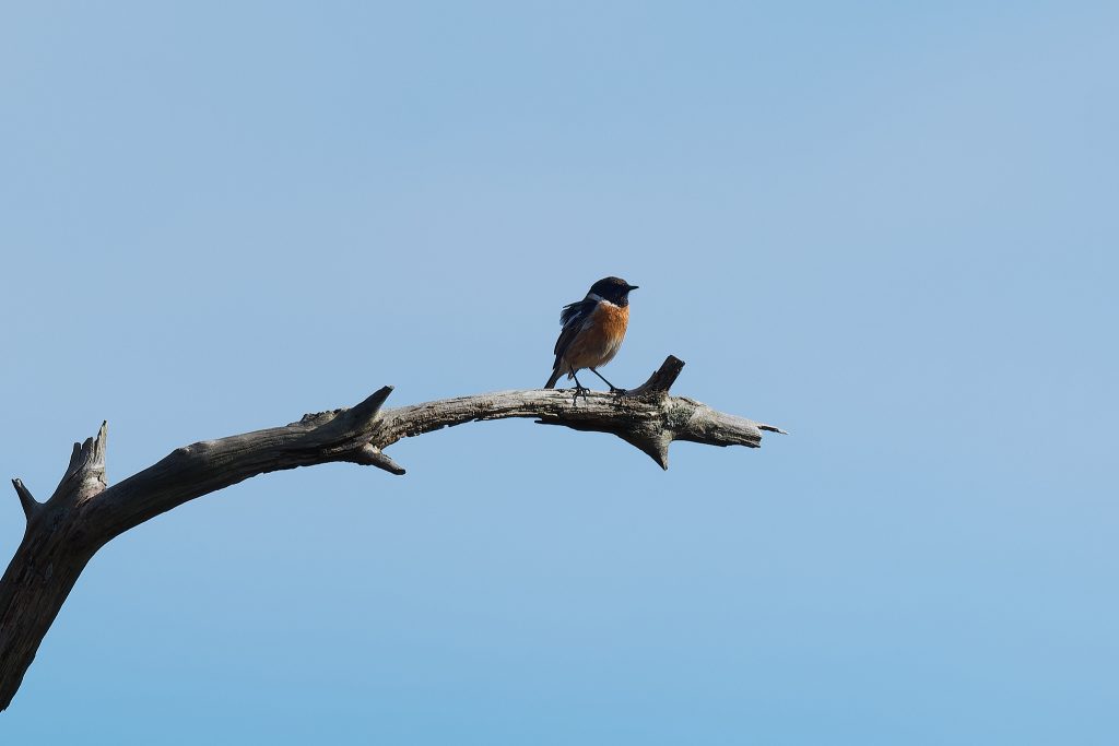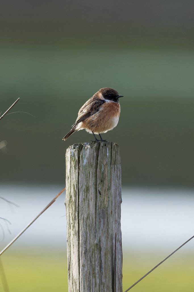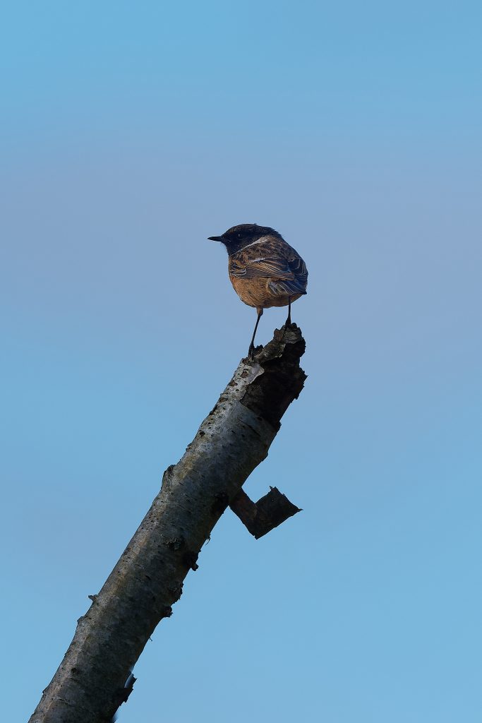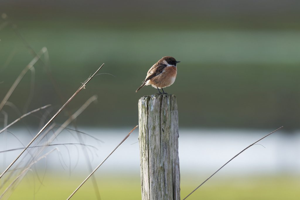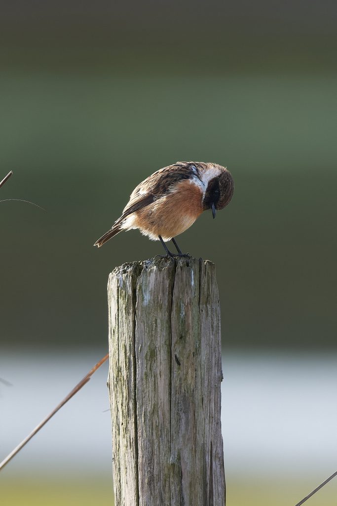 After the success of Thursley it was back to the meadow to see what’s happening in the sun today. A partially obscured male Reed Bunting and a Stonechat.