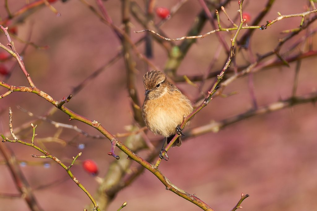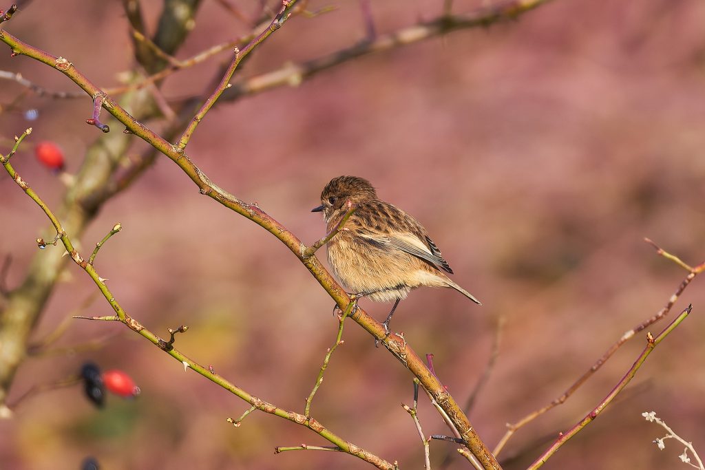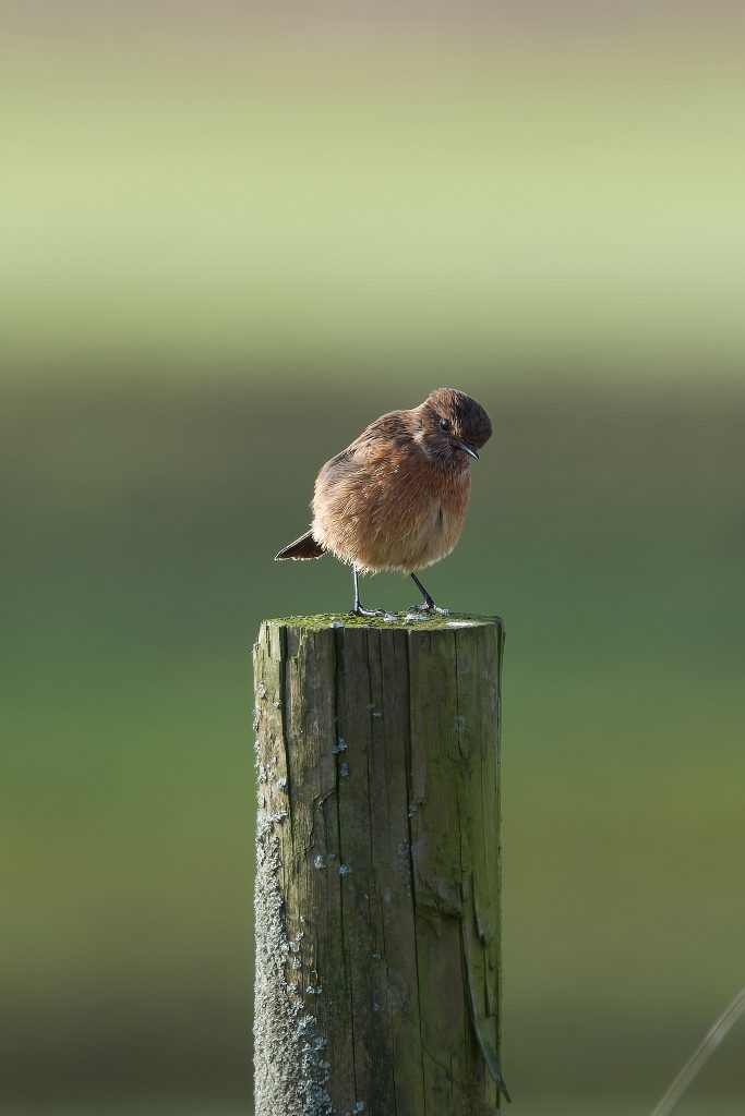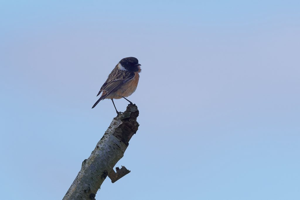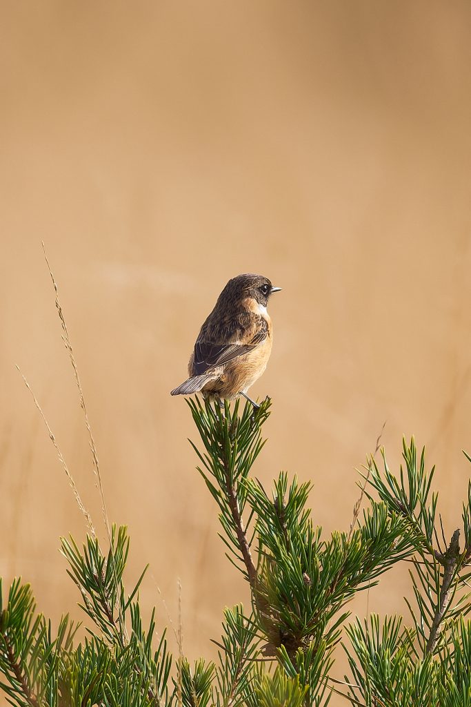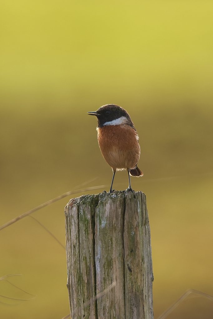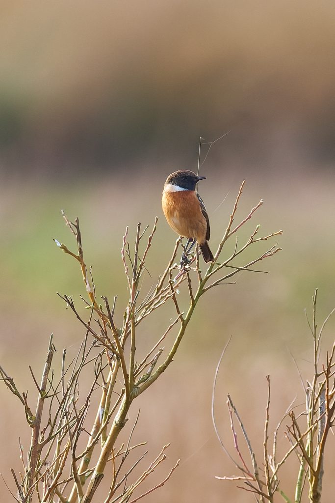 After the success of Thursley it was back to the meadow to see what’s happening in the sun today. A partially obscured male Reed Bunting and a Stonechat.
