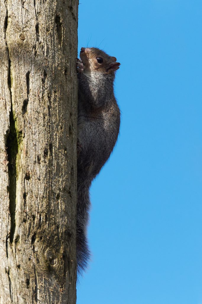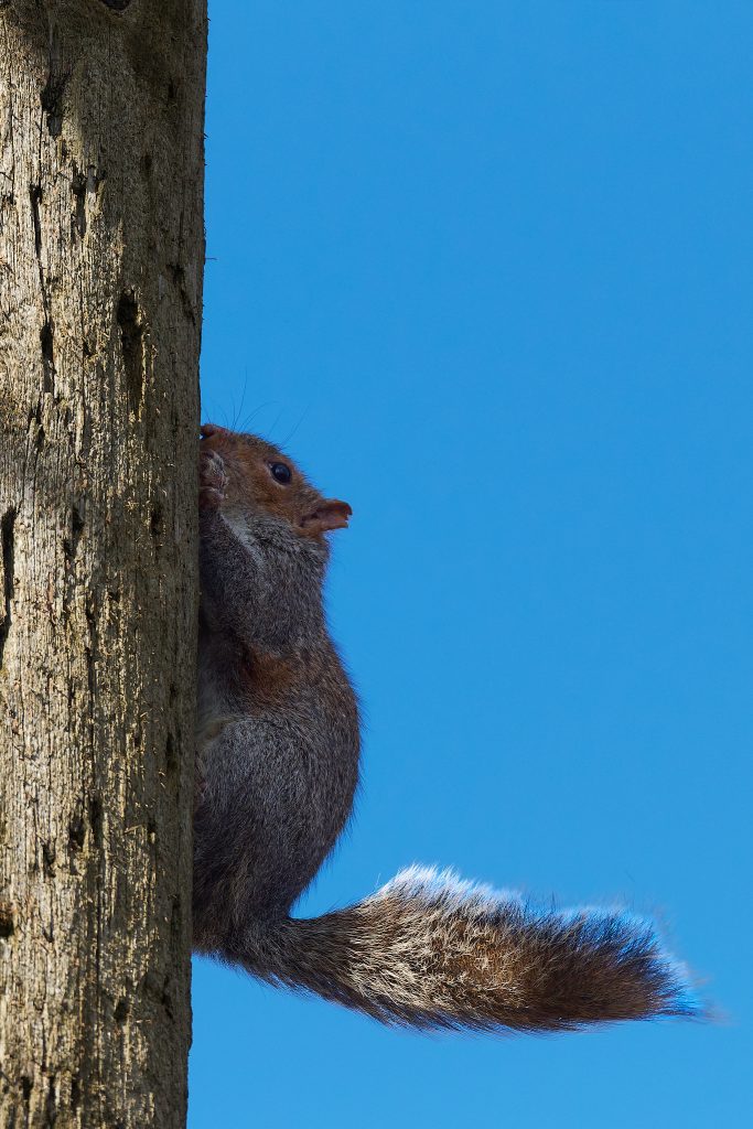 A Squirrel on a telegraph pole, Blue Tit and Black-headed Gull.