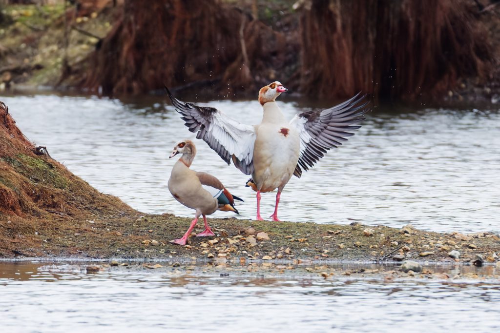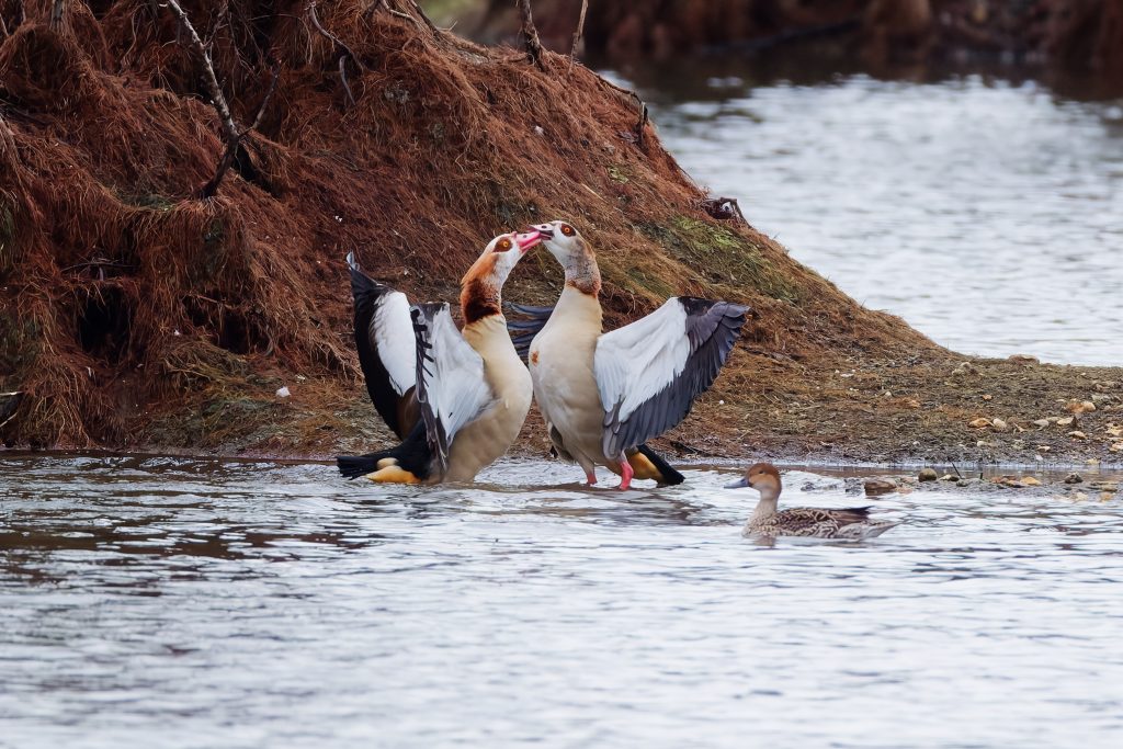 The Egyptian Goose we making lots of noise, may be building up to the breeding season.