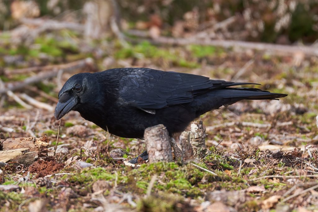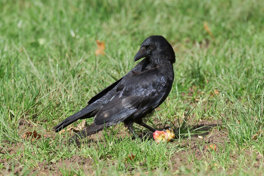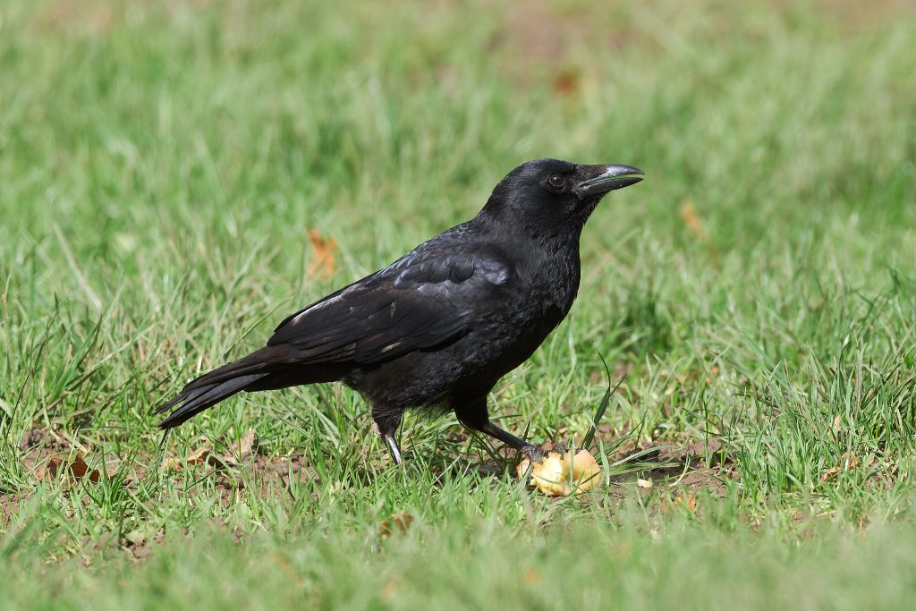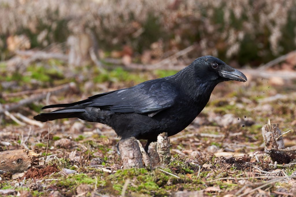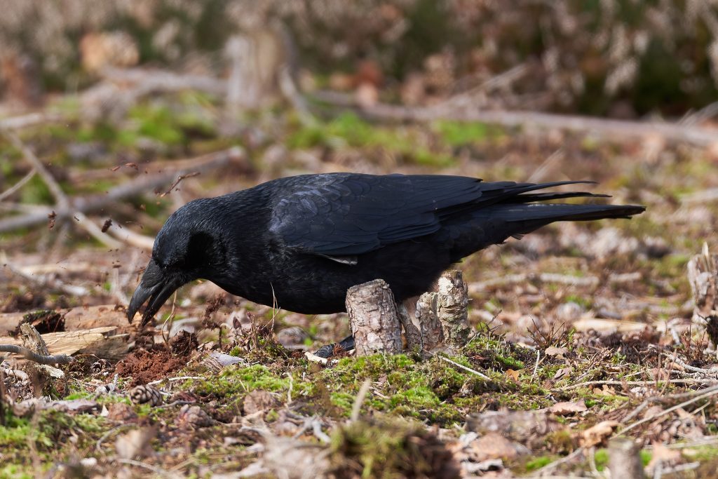A Crow feeding on the ground.