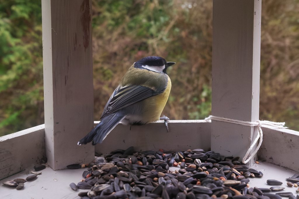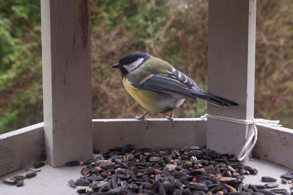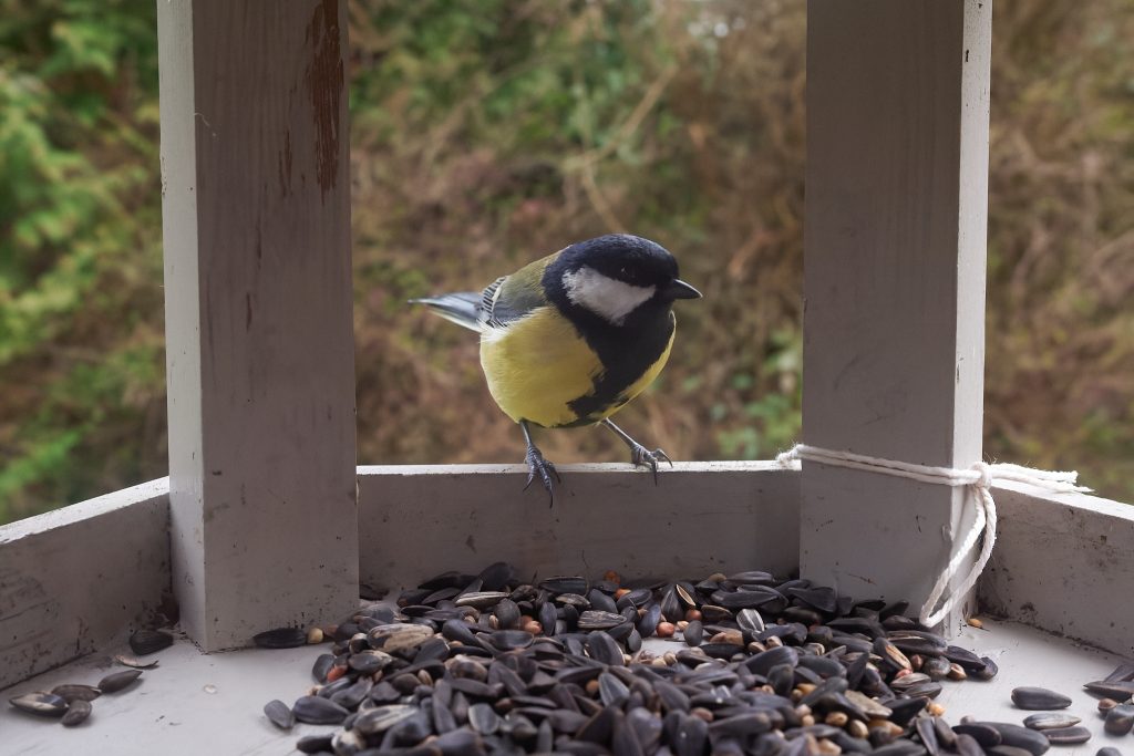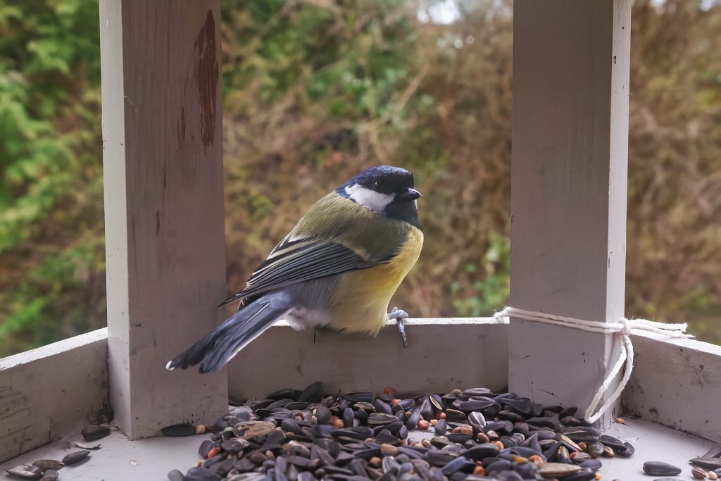 This Blue Tit was the only bird brave enough to use the bird feeders with me sat on the patio.
