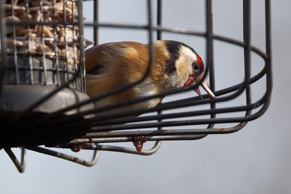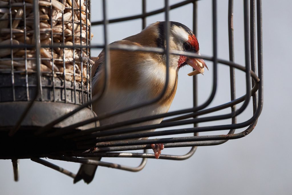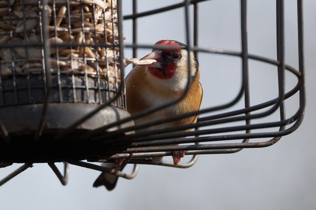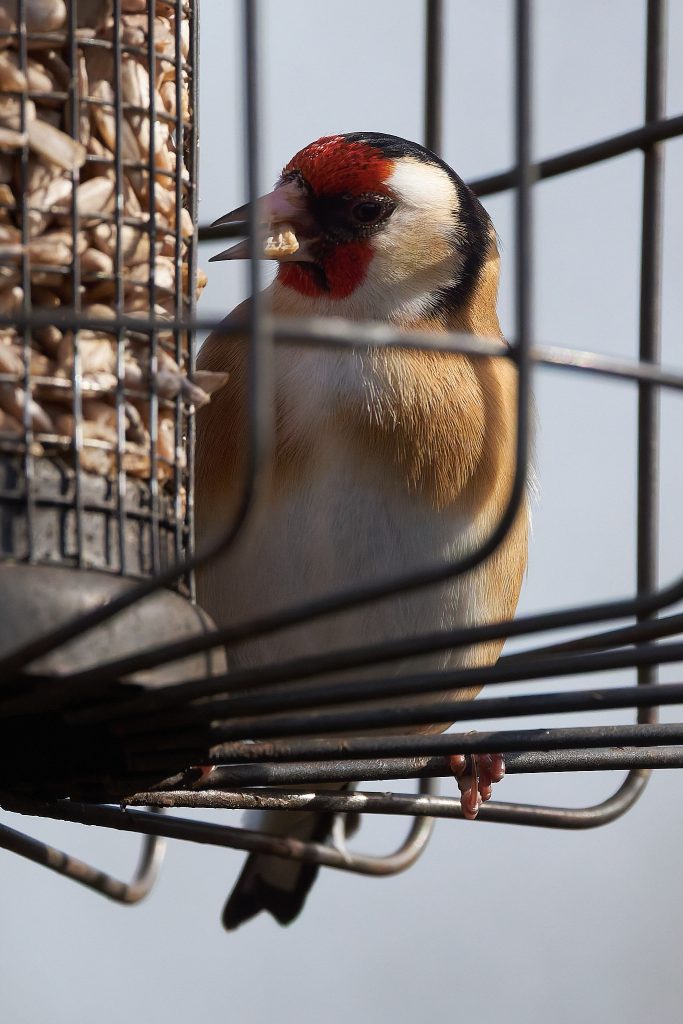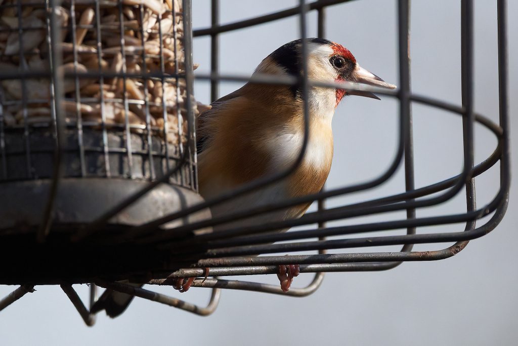 Coal Tit, House Sparrow, Great Tit, Goldfinch on the feeders.