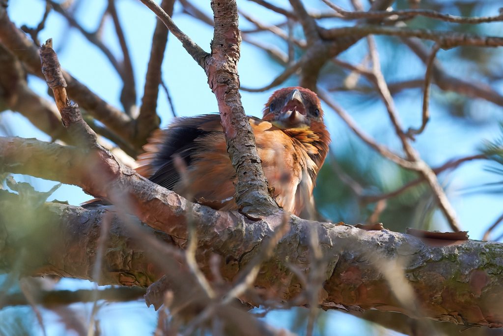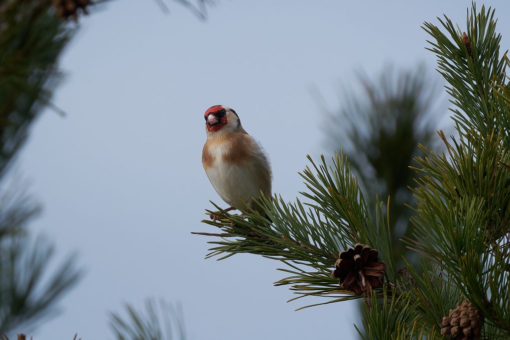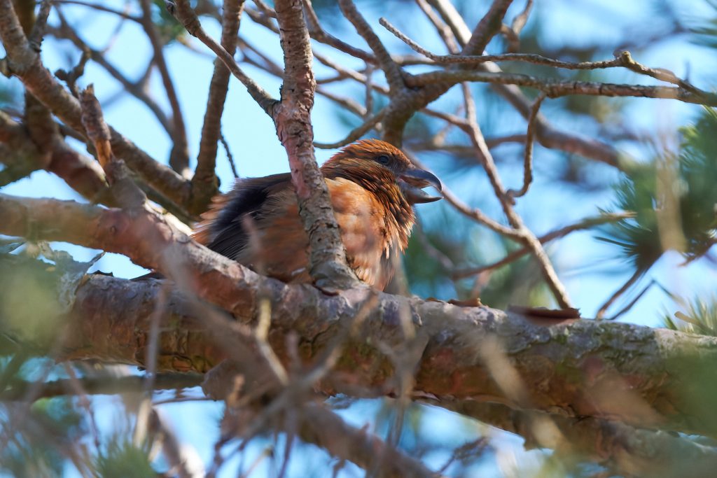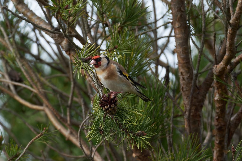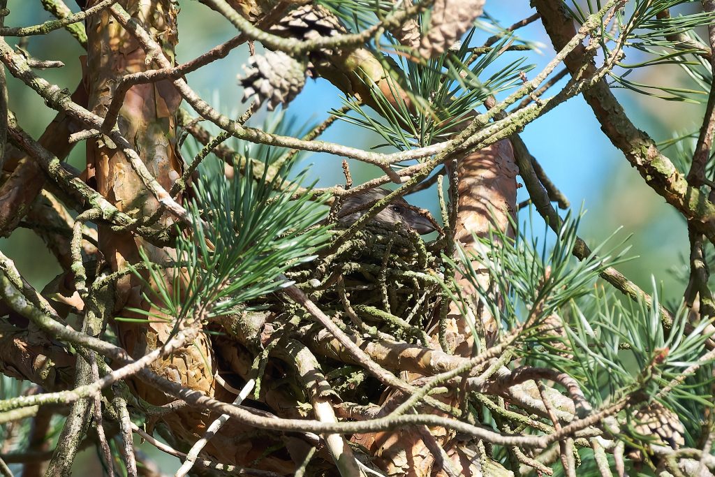 I heard a bird in a tree on the boardwalk and it took a minute to two find it, but it was a male Crossbill! I didn’t take long for others to stop and see what I was paying so much attention too and before long at least a dozen birders and photographers we standing around this tree. They eat the fur cones, and if they are nesting take it back to the female who is sat on the egg. The Crossbill nest I photographed a week or 2 ago has completely disappeared. Not sign of it at all. Hopefully Malcolm wasn’t right when he said someone might try to steal the eggs if its location became too widely known but it seems odd that the nest has gone. It was unfortunately within 8 feet of the footpath so anything is possible.