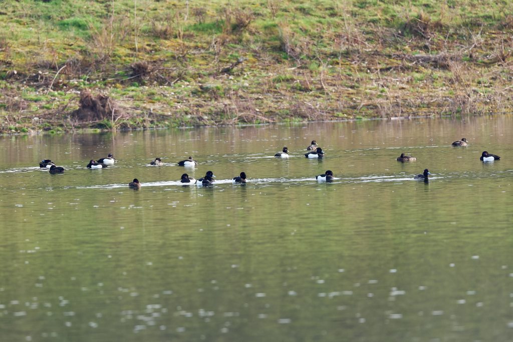 Lots of Tufted Duck today. The birds that all left when the working froze over in January and gradually returning.