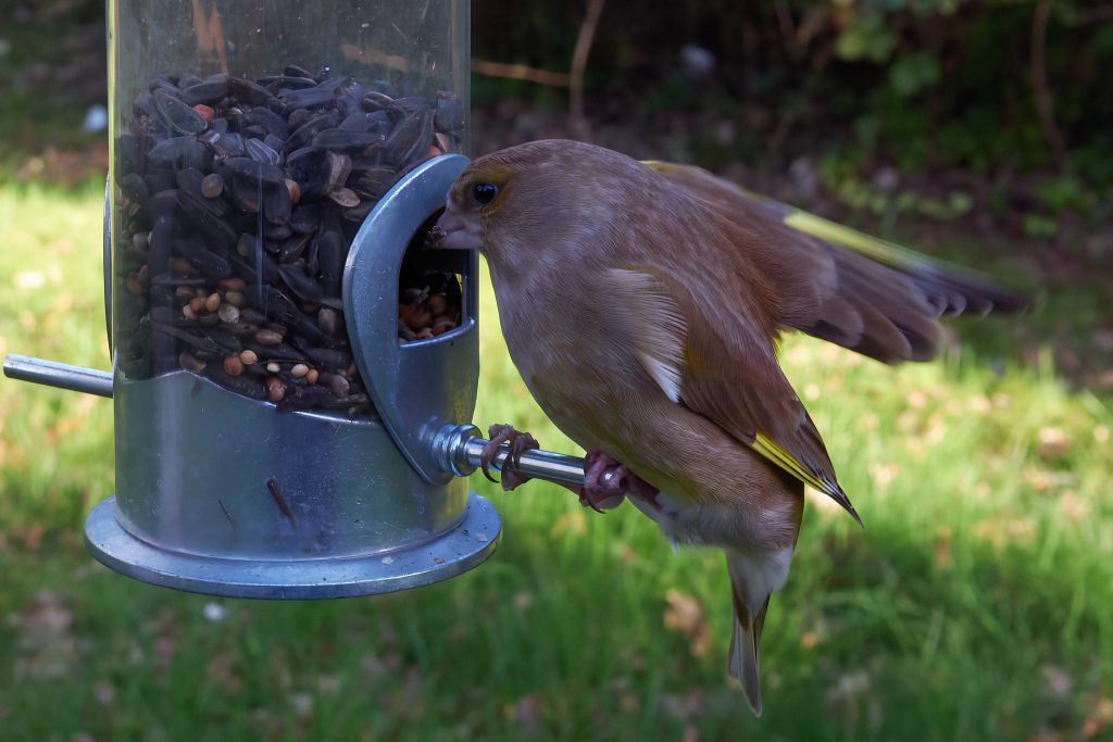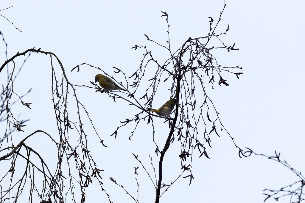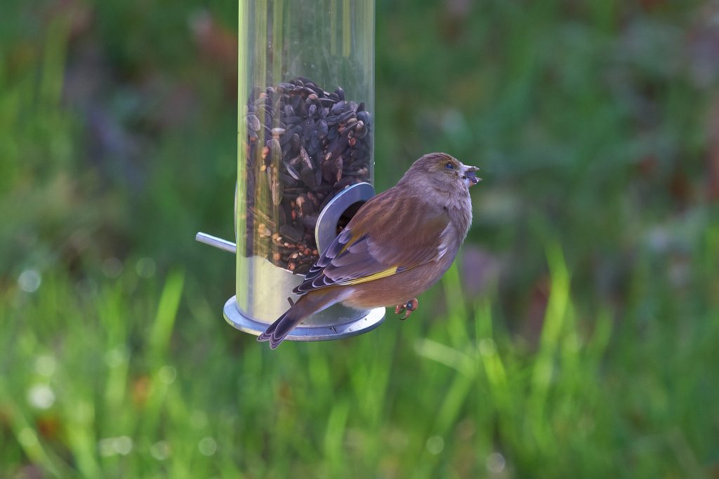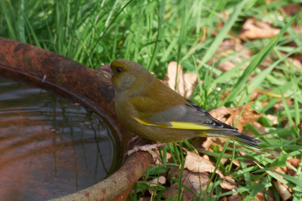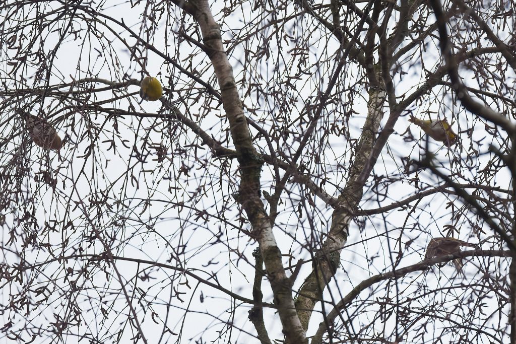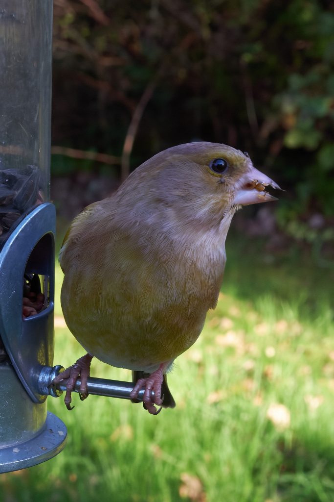 I got home from Thursley, went up stairs to my office and just after putting my bag down looked out of the Window. Haven’t seen the Greenfinch for a while, though I was sure they were using the bird feeder because they sit on it and take so much seed for themselves. The feeder is getting refilled at least once a week. They seem to be flying in and out of the shrubs near by, though I’ve not spotted a nest but don’t want to risk disturbing them by having a proper look.