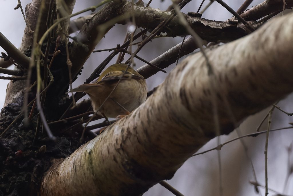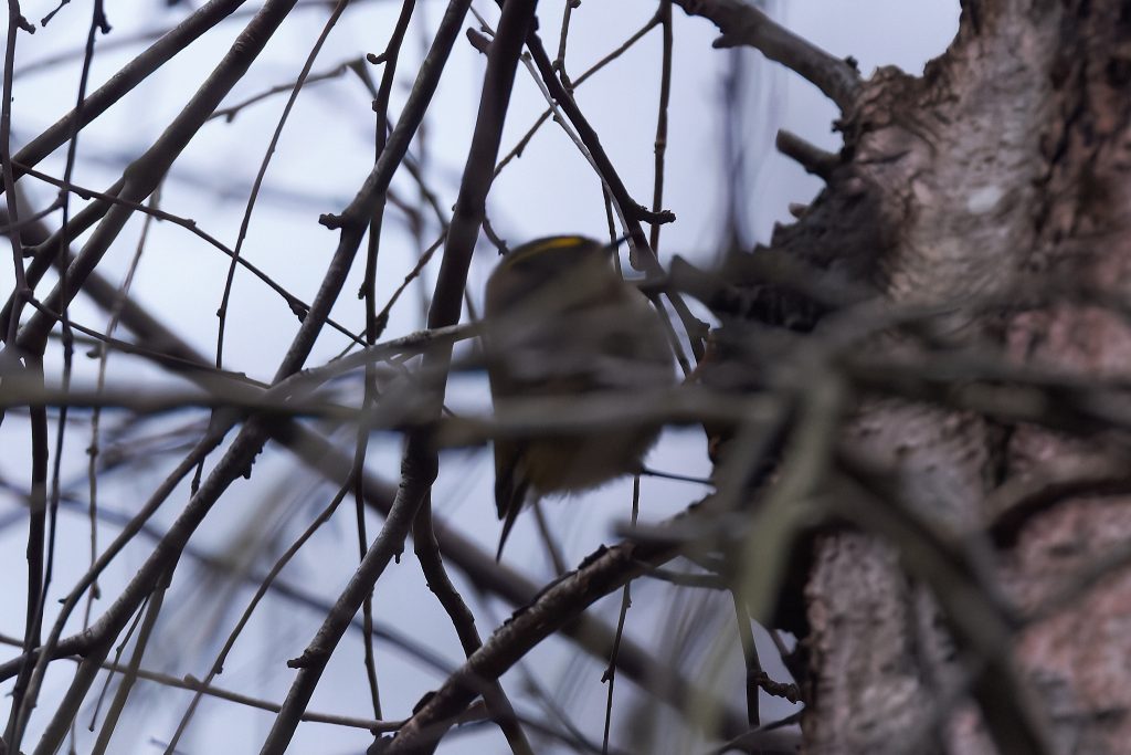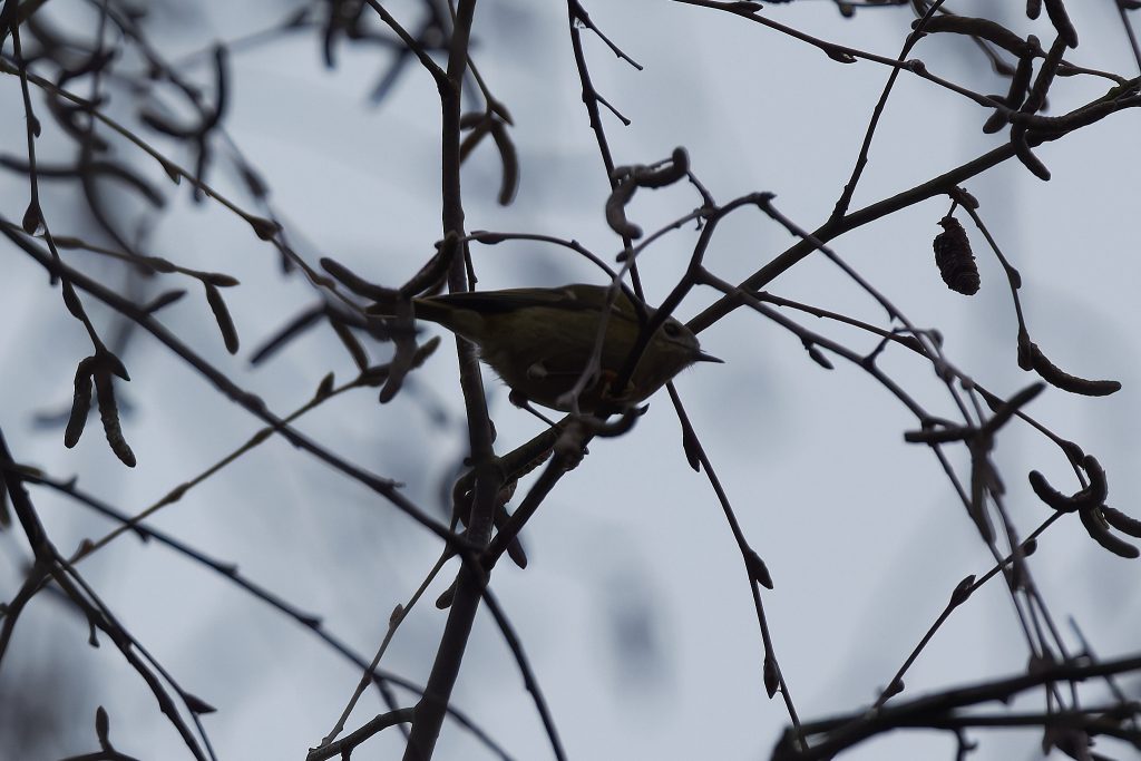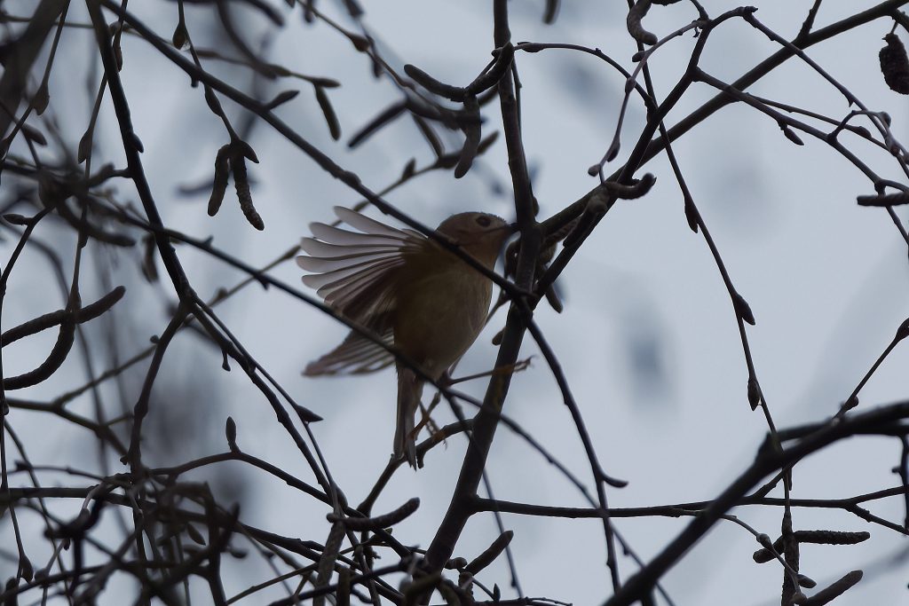 The lawn is desperately in need of a cut, but I can’t get the mower to start. After several fruitless minutes I gave up and sat on the patio to work out what to do next. Whilst there I could here birdsong, so I started Merlin and it quickly decided there was a Firecrest singing. I’ve seen it report that before but never seen one, so this time I decided to play back the Firecrest bird song to see if it would it into the open. I’m not sure this is entirely ethical, but it worked and quickly brought it onto a nearby branch, just long enough to get a single shot off. This is my first and only photograph of a Firecrest. Notice the orange strip just visible on the crown.