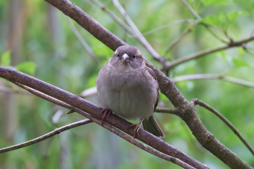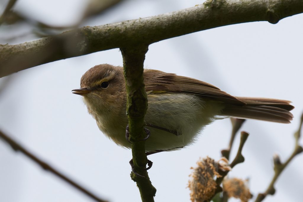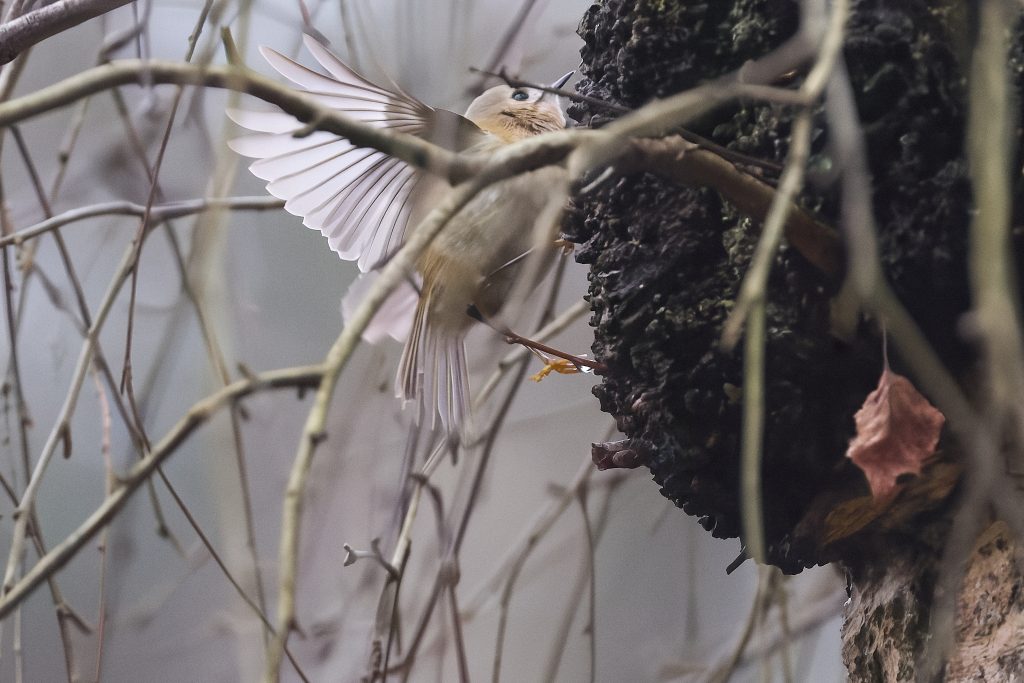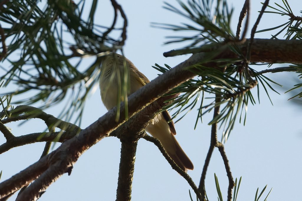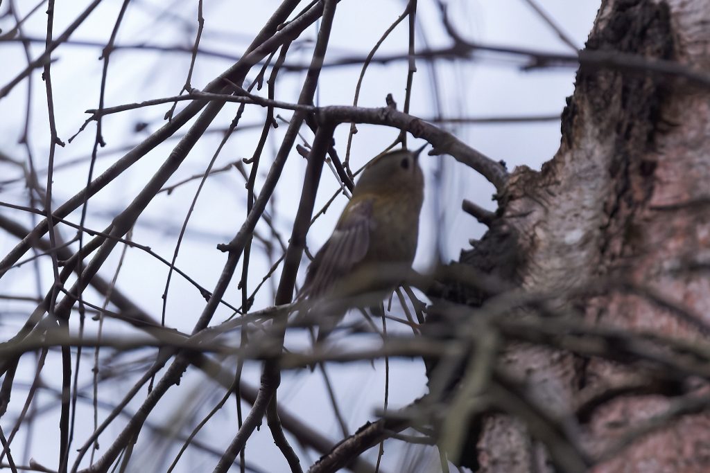 The lawn is desperately in need of a cut, but I can’t get the mower to start. After several fruitless minutes I gave up and sat on the patio to work out what to do next. Whilst there I could here birdsong, so I started Merlin and it quickly decided there was a Firecrest singing. I’ve seen it report that before but never seen one, so this time I decided to play back the Firecrest bird song to see if it would it into the open. I’m not sure this is entirely ethical, but it worked and quickly brought it onto a nearby branch, just long enough to get a single shot off. This is my first and only photograph of a Firecrest. Notice the orange strip just visible on the crown.