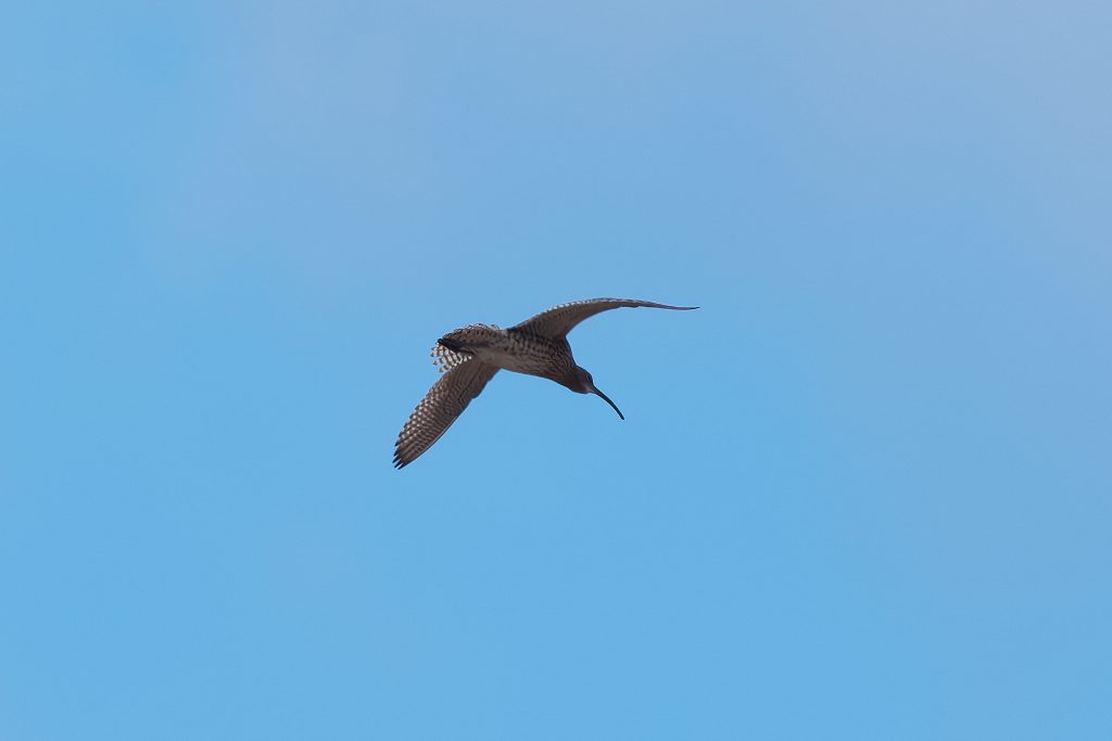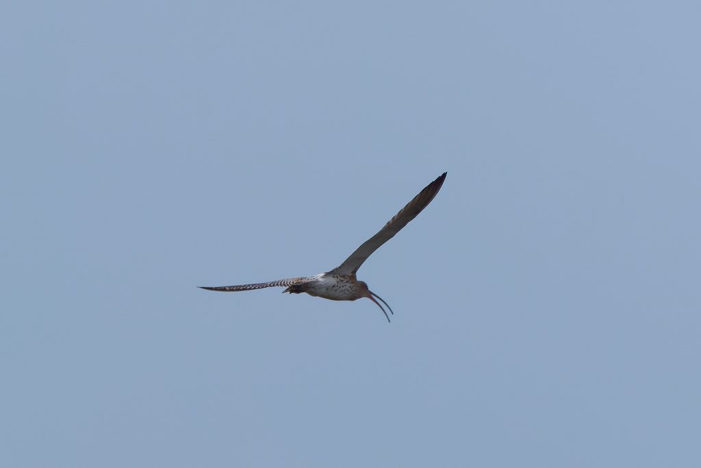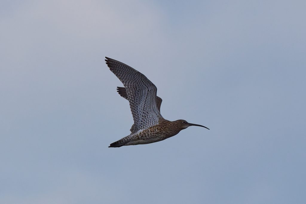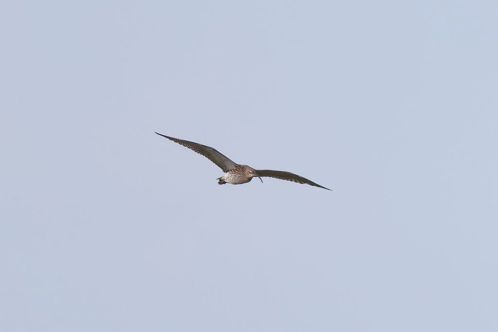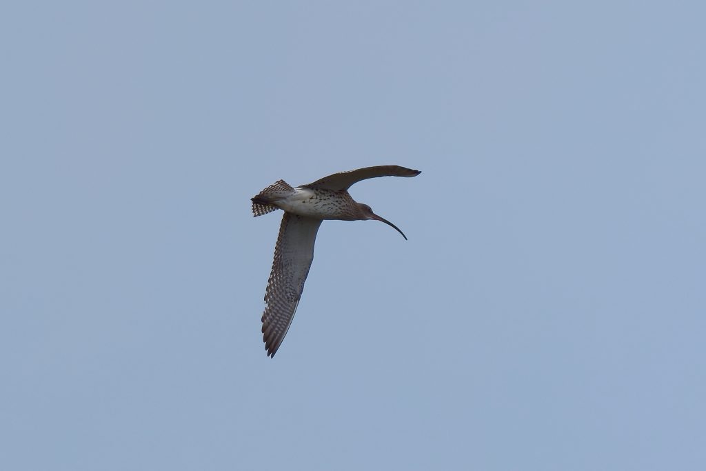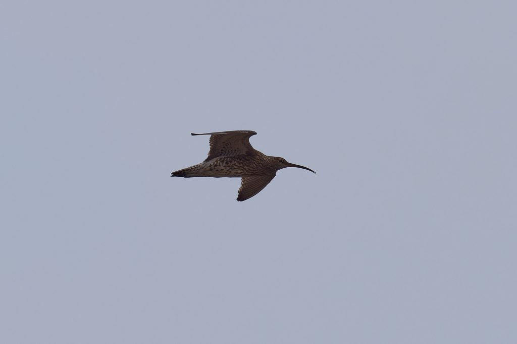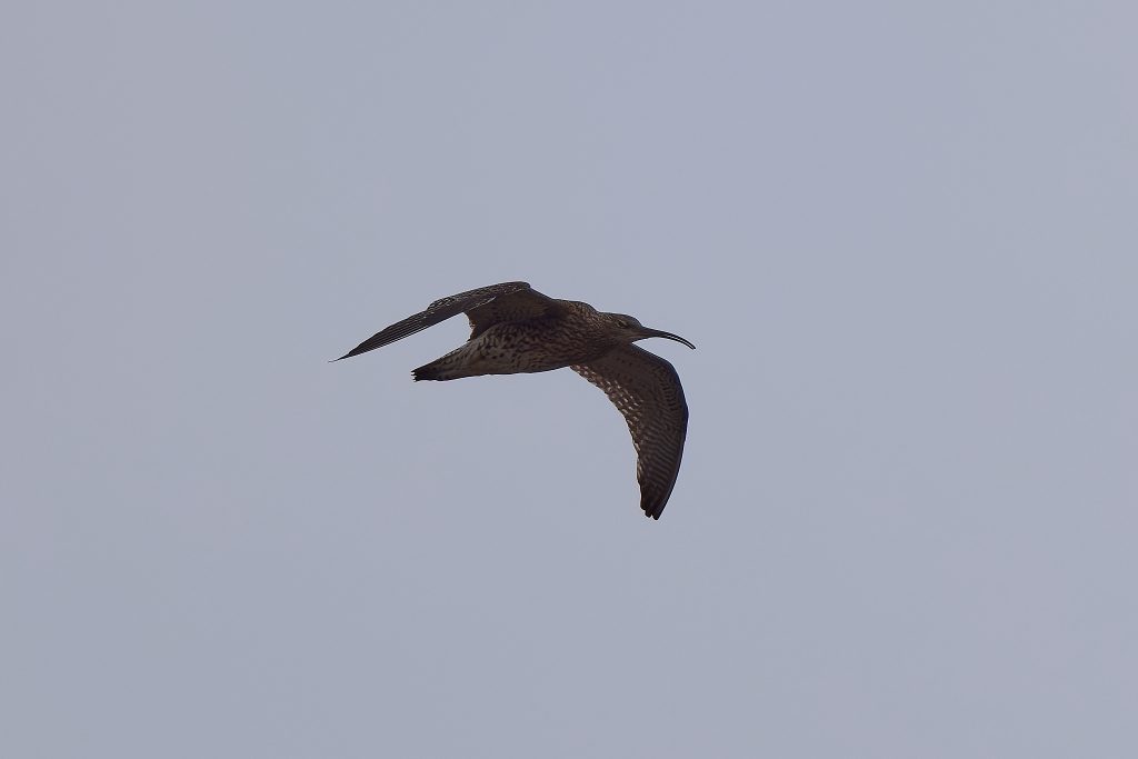I’ve been trying to get some nice shots of Curlew for some time. In recent visits I saw them, but at such a distinct that the heavily cropped images really didn’t have the image quality I would like. Today, one finally came very close, in fast right overhead but I just could not get it in the frame in focus. This fist shot it the nearest I came to that. The rest are once again heavy crops.