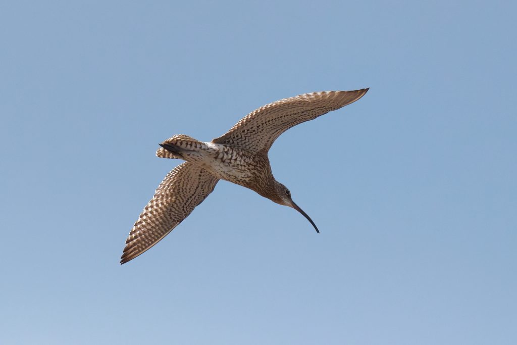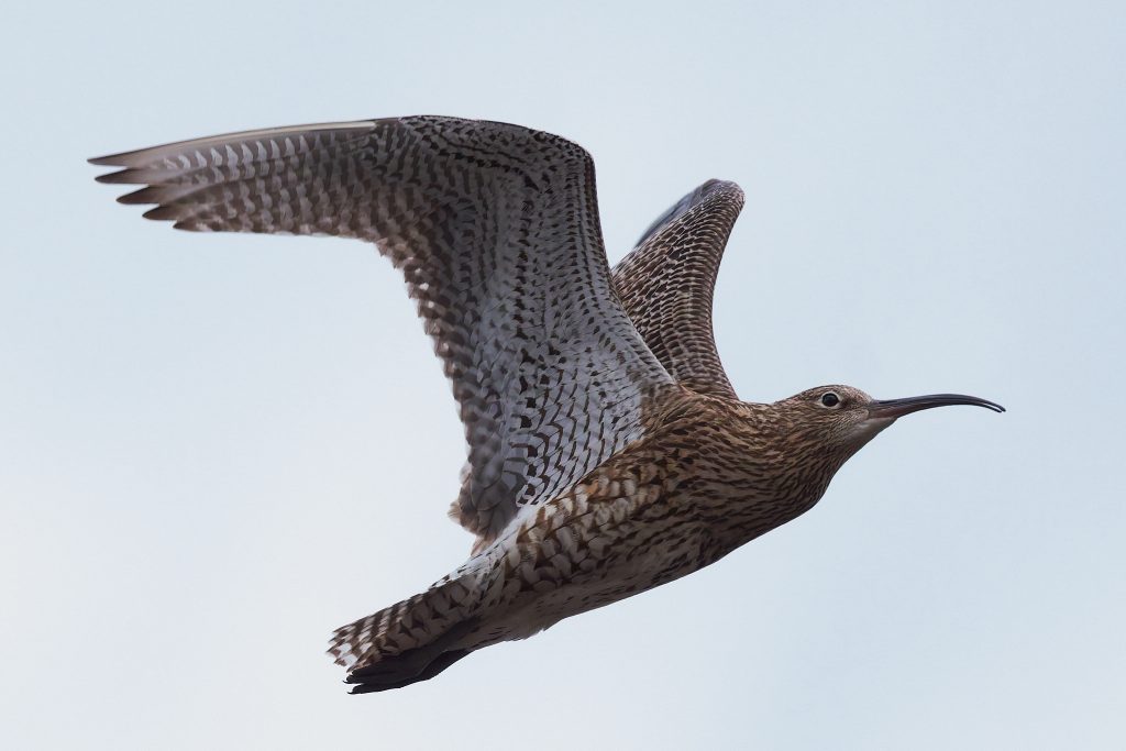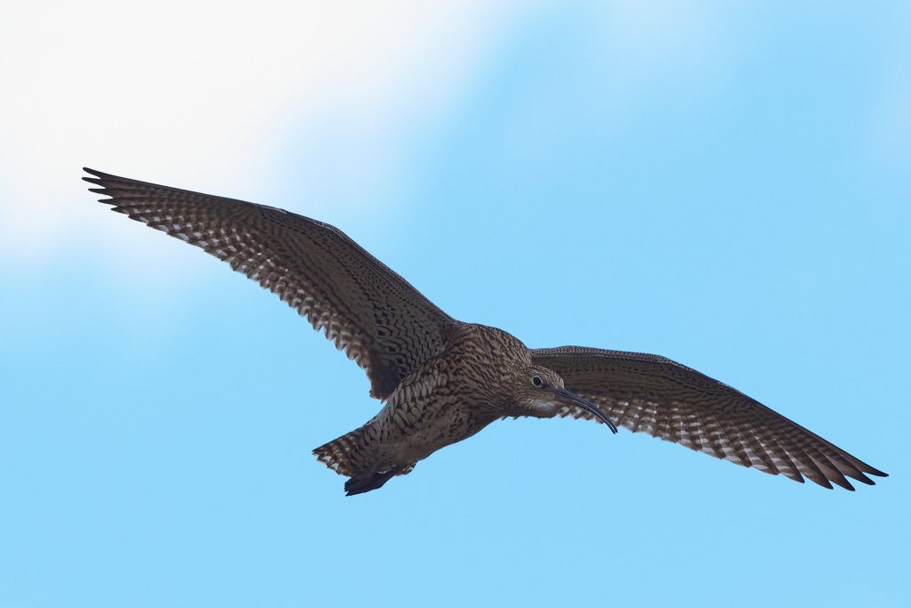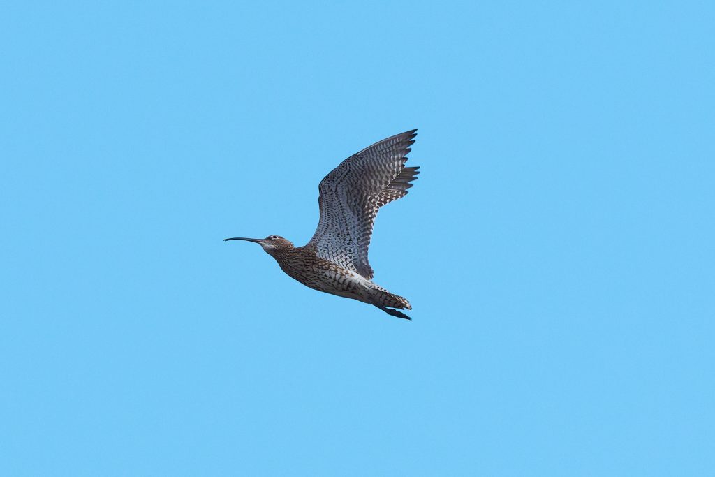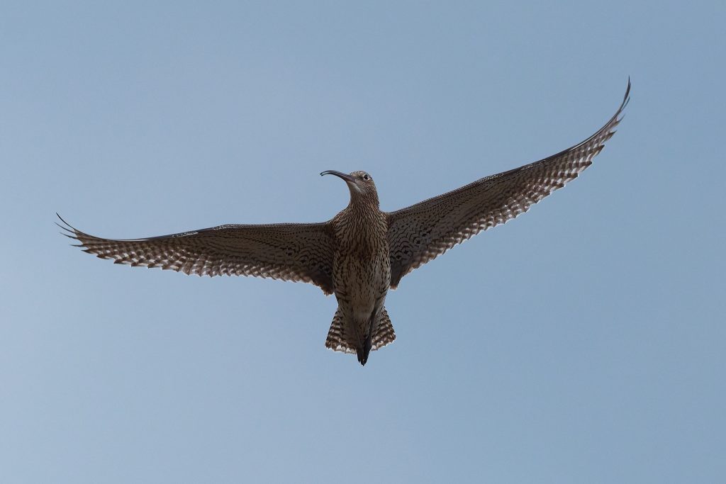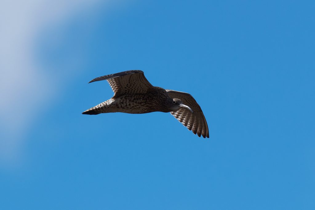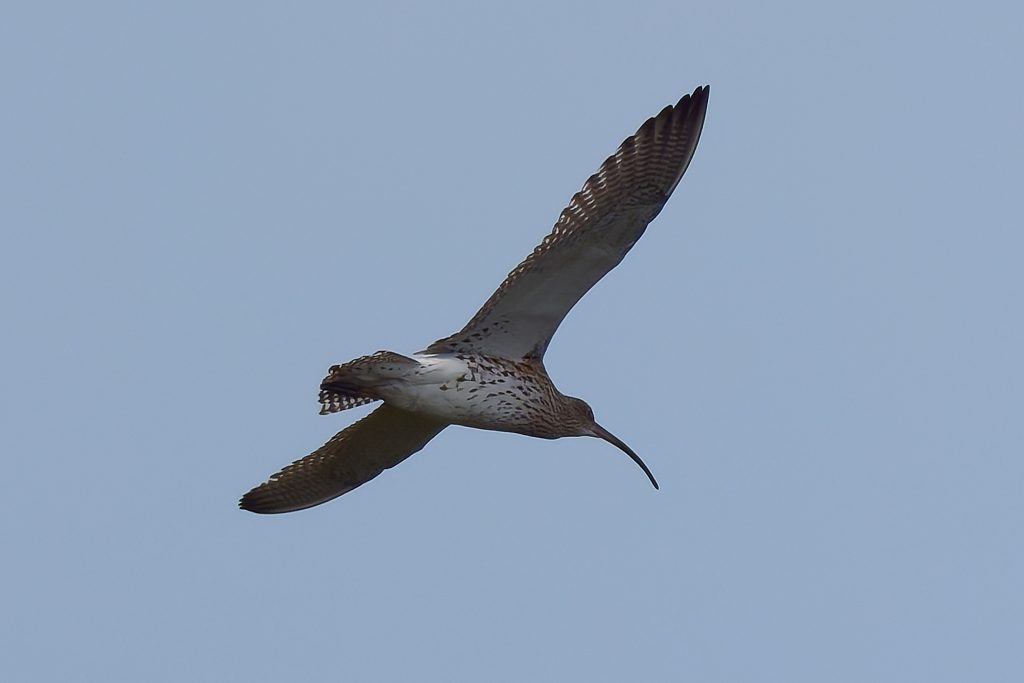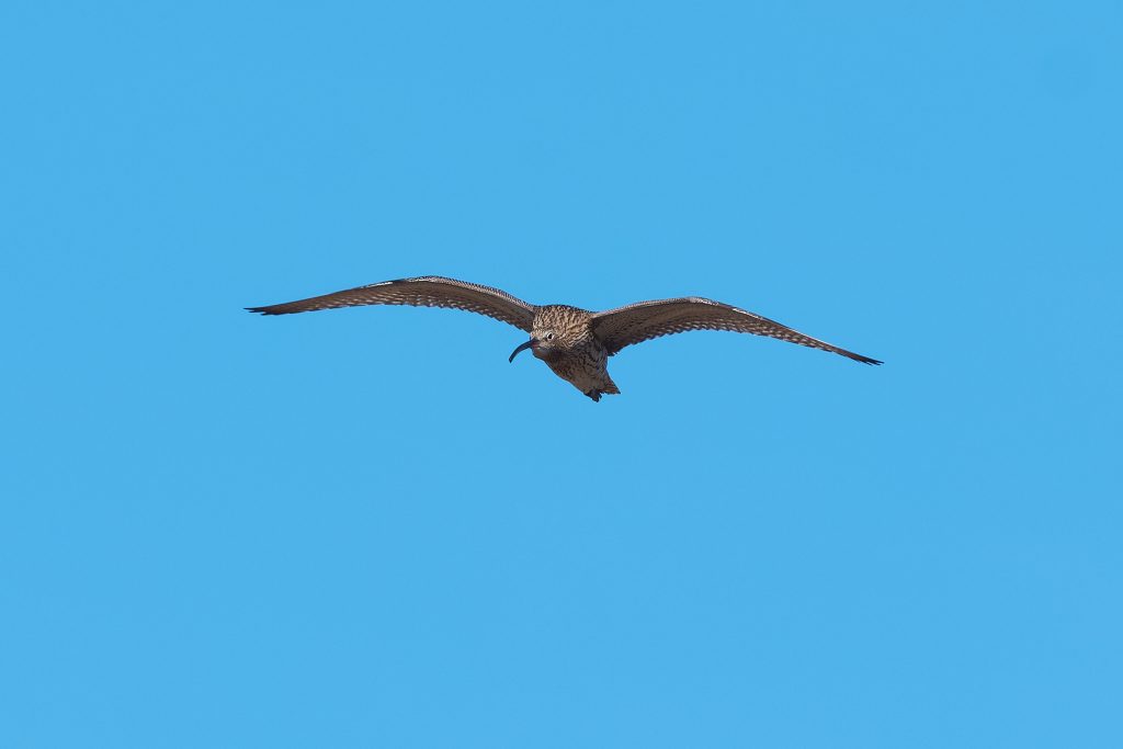 I’ve been trying to get some nice shots of Curlew for some time. In recent visits I saw them, but at such a distinct that the heavily cropped images really didn’t have the image quality I would like. Today, one finally came very close, in fast right overhead but I just could not get it in the frame in focus. This fist shot it the nearest I came to that. The rest are once again heavy crops.