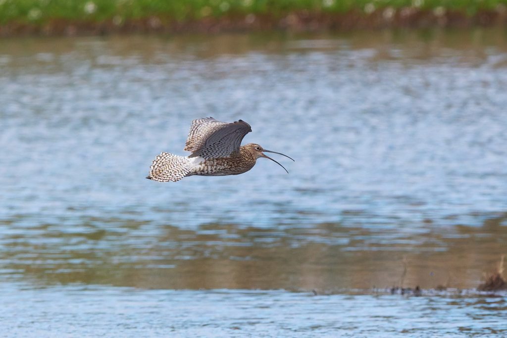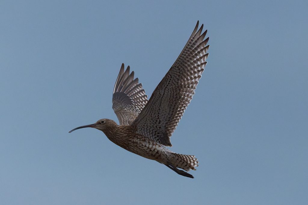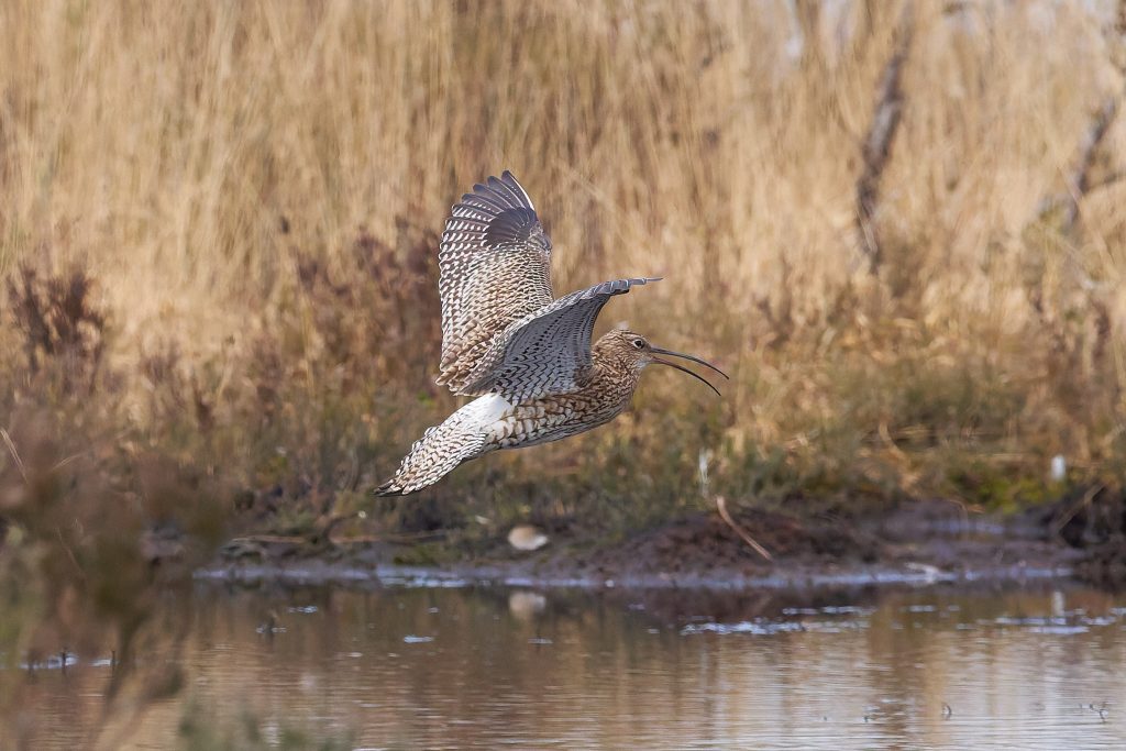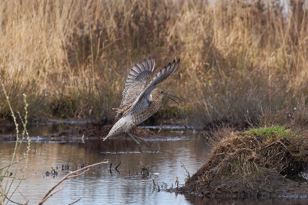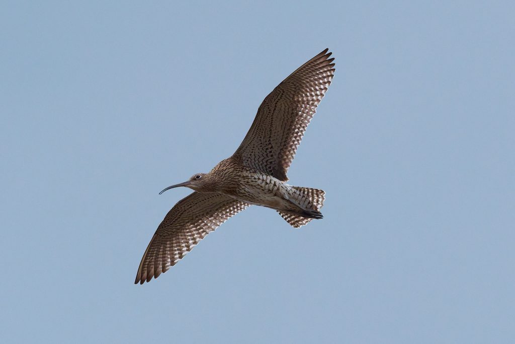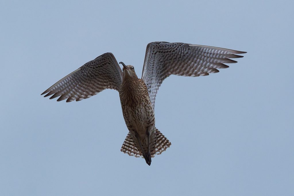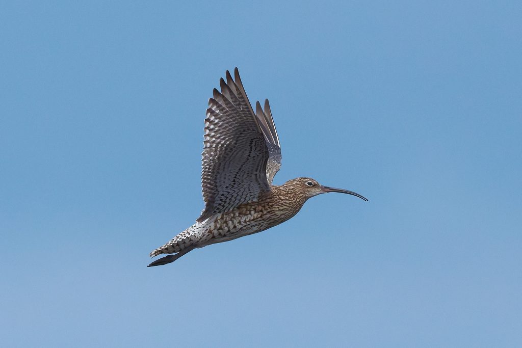 I’ve been trying to get some nice shots of Curlew for some time. In recent visits I saw them, but at such a distinct that the heavily cropped images really didn’t have the image quality I would like. Today, one finally came very close, in fast right overhead but I just could not get it in the frame in focus. This fist shot it the nearest I came to that. The rest are once again heavy crops.