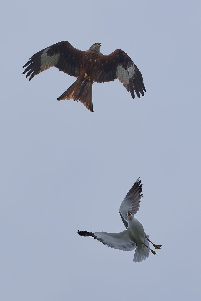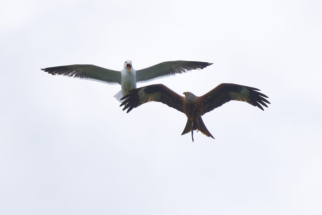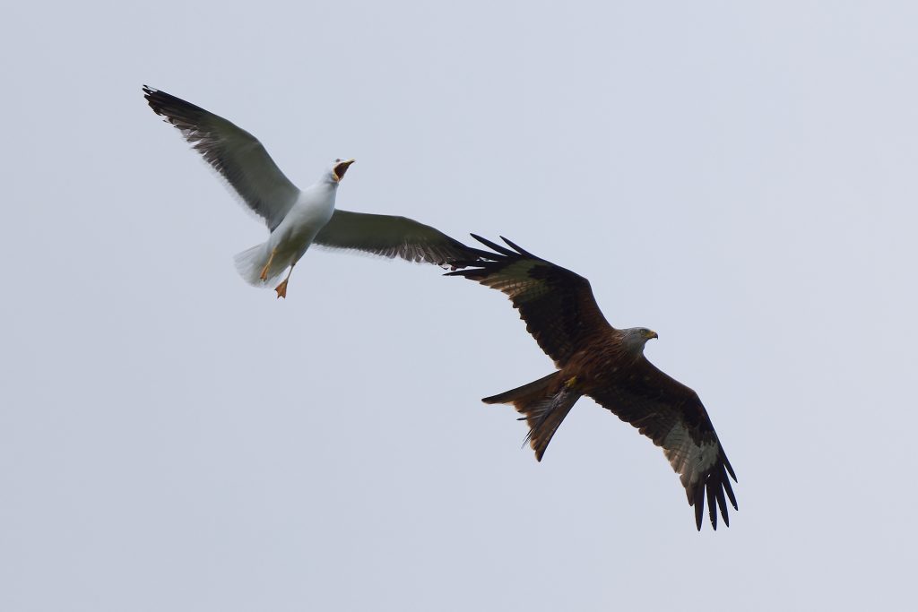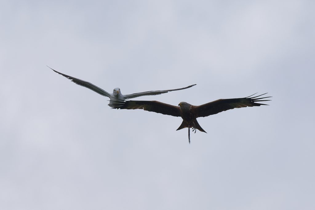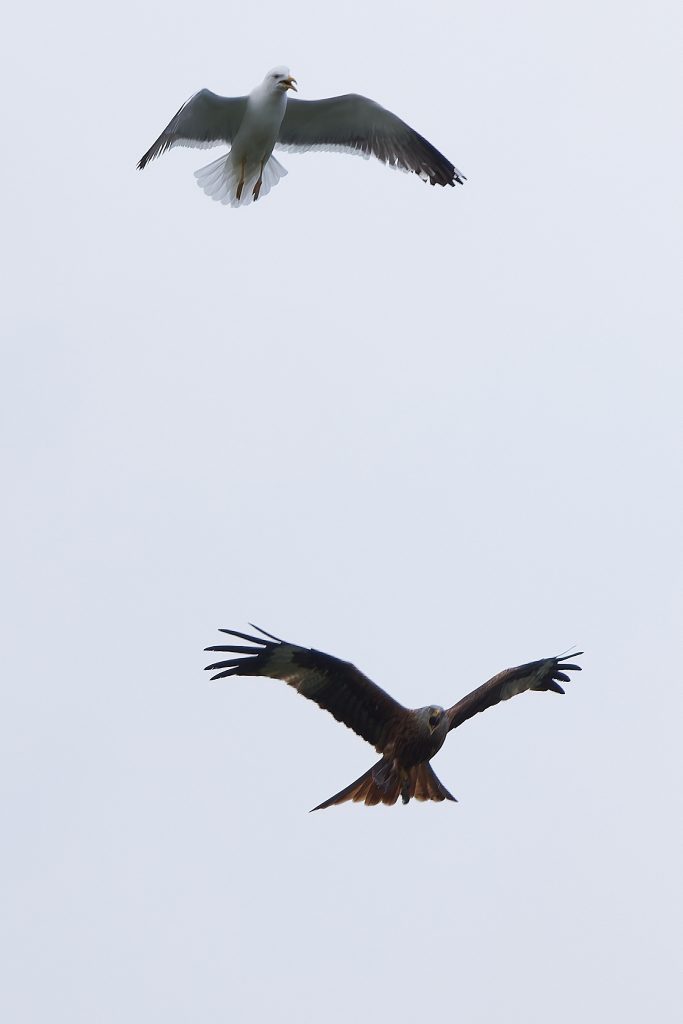 A lunchtime walk around the meadow, too late for the rain but too early for the sun. Some nice shots of a Red Kite being harassed by a Lesser-Black Backed Gull. The Red Kite was carrying its last meal, shame the sun wasn’t out!